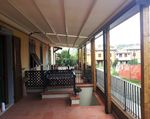 Copertura su strutture in legno già esistenti, con n°3 tende mod. Med 85. Guide in alluminio verniciato Ral 8017 (marrone), tessuto opatex color avorio. Tutte complete di gronda e pluviale, movimentazione manuale. Galleria fotografica |